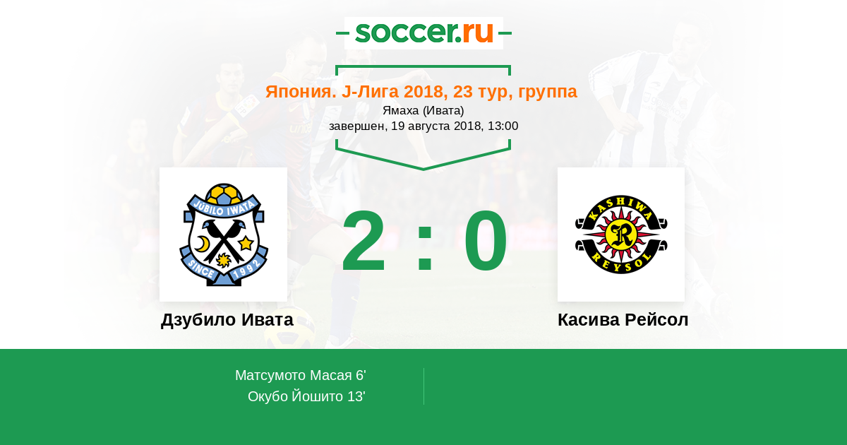 Протокол матча Дзубило Ивата против Касива Рейсол