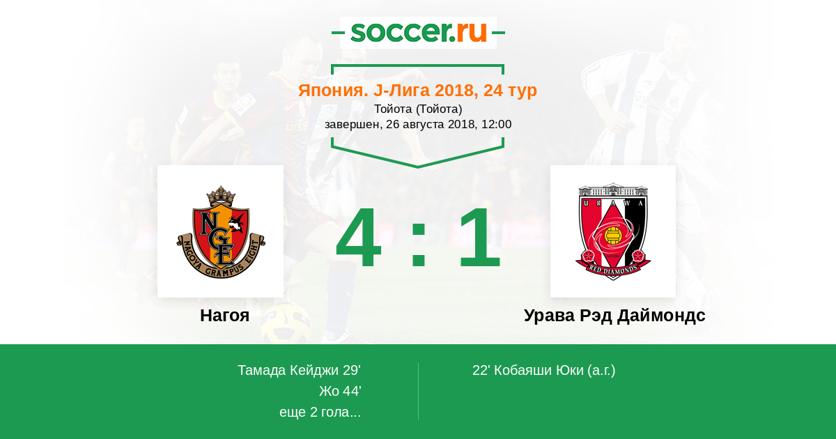 Протокол матча Нагоя против Урава Рэд Даймондс