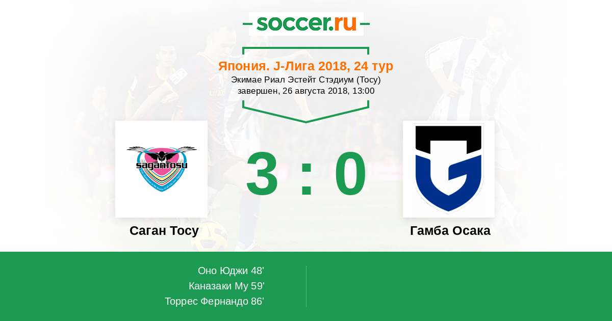 Протокол матча Саган Тосу против Гамба Осака