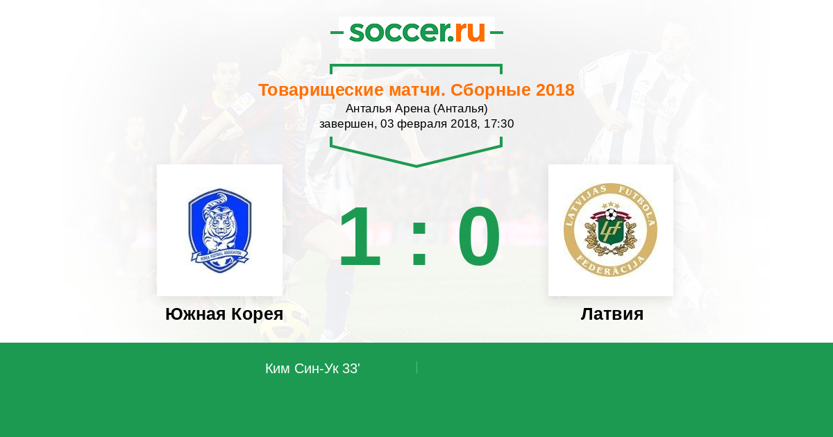 Протокол матча Южная Корея против Латвия