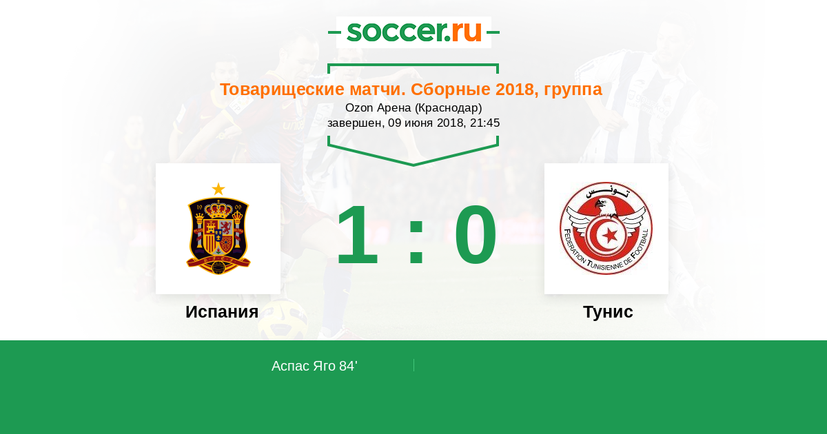 Протокол матча Испания против Тунис