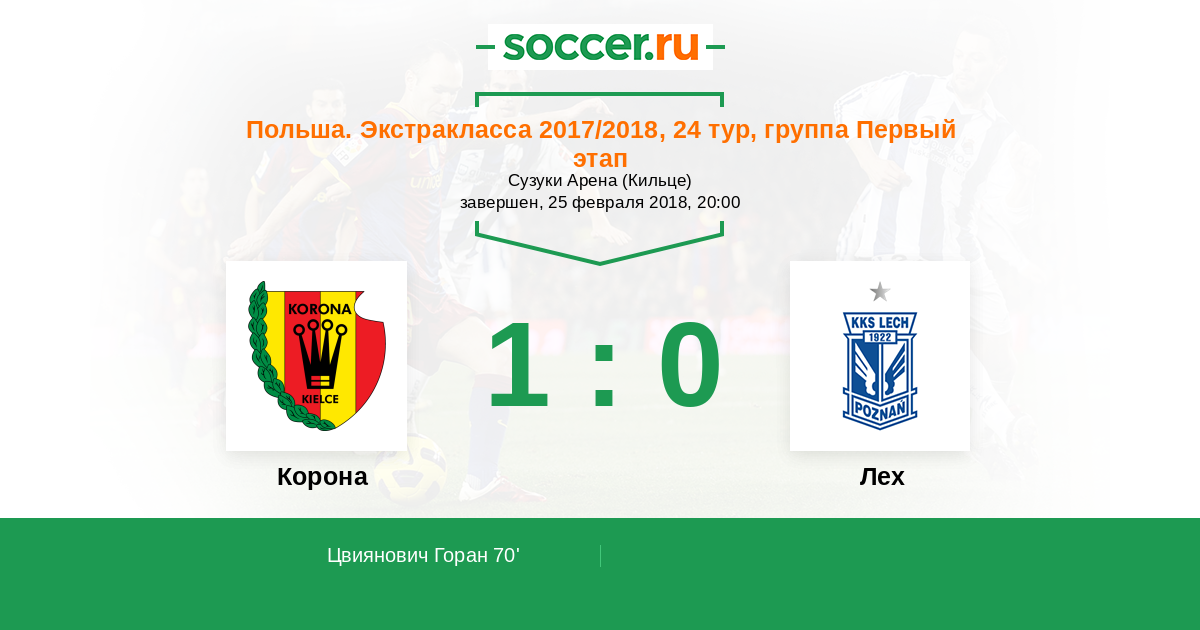 Протокол матча Корона против Лех