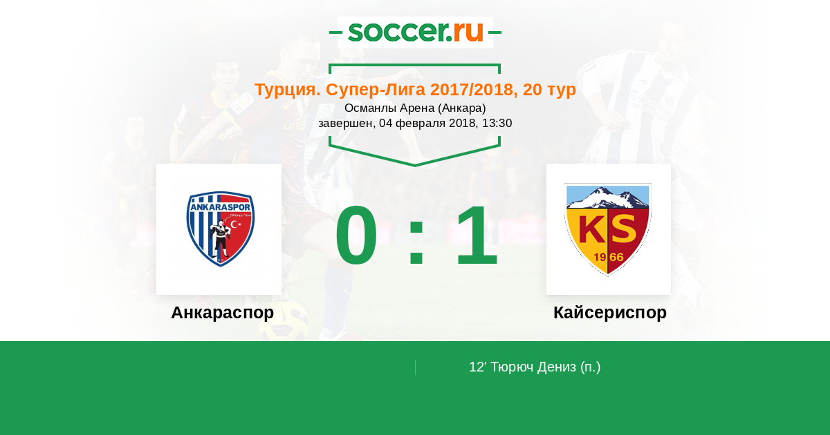 Протокол матча Османлыспор против Кайсериспор