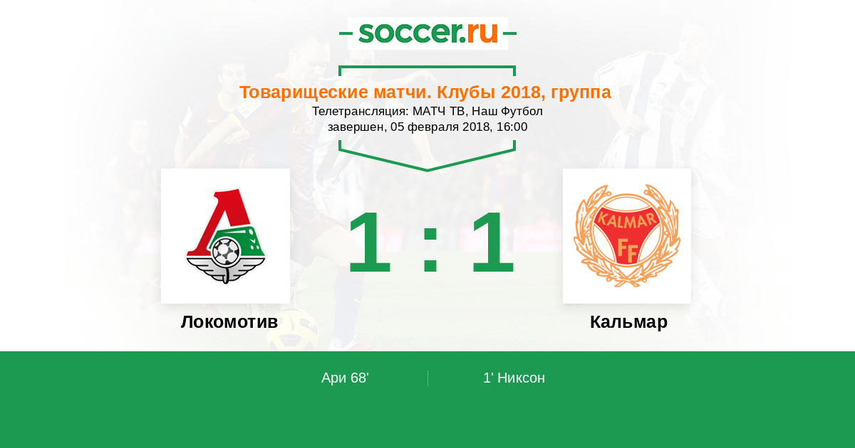 Протокол матча Локомотив против Кальмар