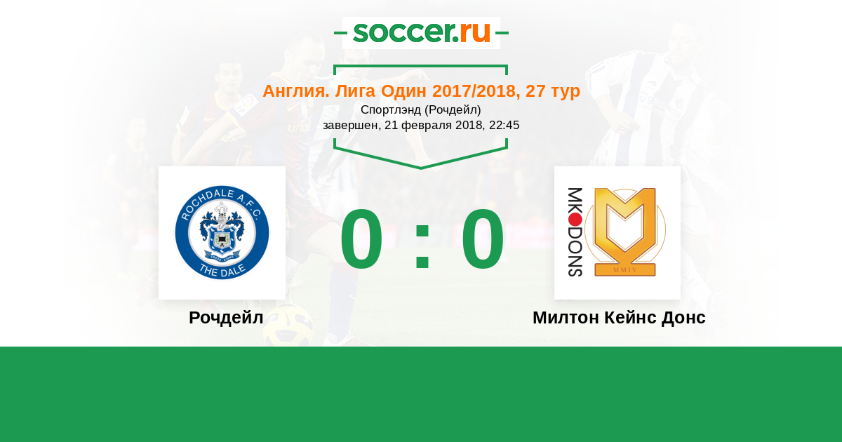 Протокол матча Рочдейл против Милтон Кейнс Донс