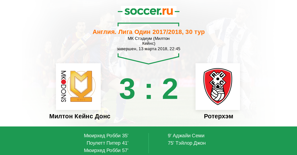 Протокол матча Милтон Кейнс Донс против Ротерхэм