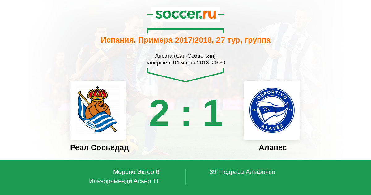 Протокол матча Реал Сосьедад против Алавес