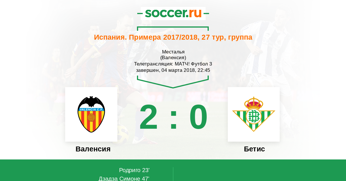 Протокол матча Валенсия против Бетис