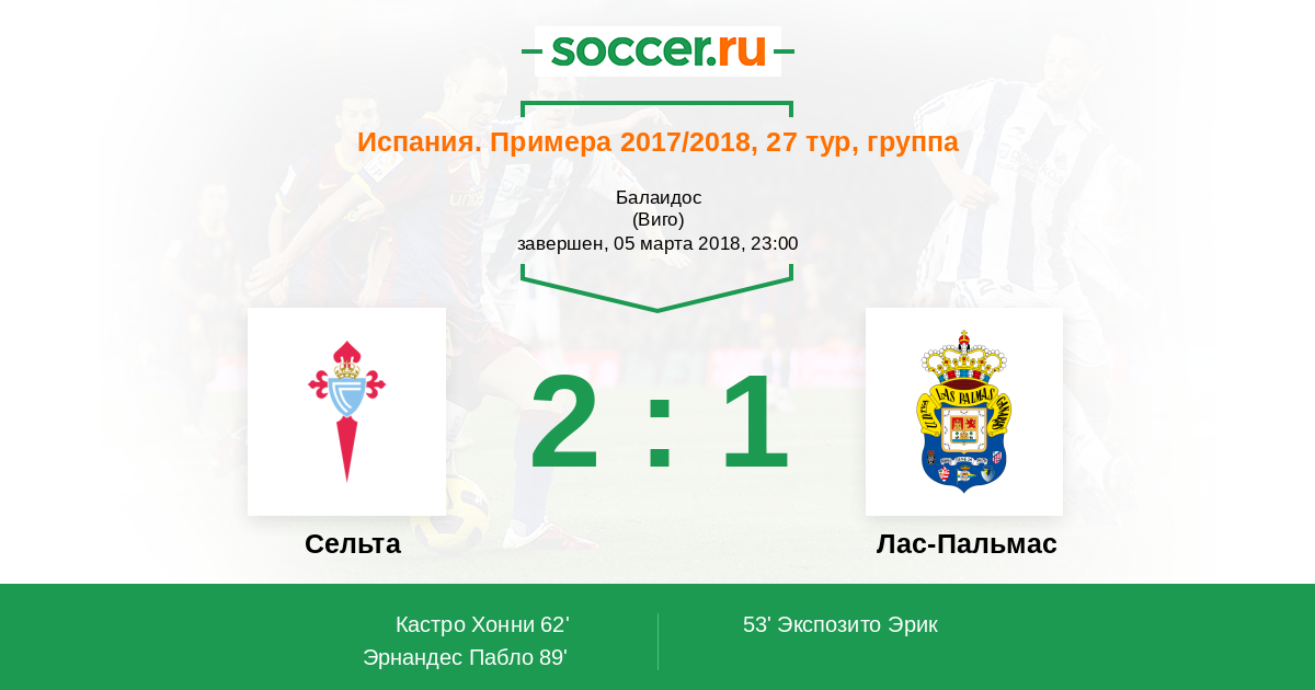 Протокол матча Сельта против Лас-Пальмас