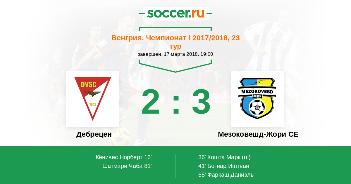 Протокол матча Дебрецен против Мезоковешд-Жори СЕ