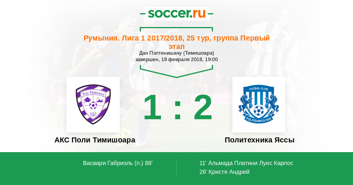 Протокол матча АКС Поли Тимишоара против Политехника Яссы