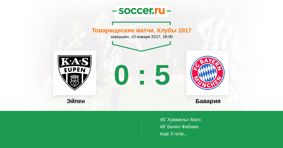 Протокол матча Эйпен против Бавария
