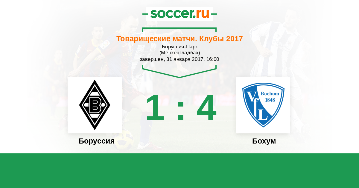 Товарищеские матчи. Клубы 16.01.2016 Бохум Логотип футбольный клуб Бохум 5:2 Логотип футбольный клуб Боруссия (Менхенгладбах) Боруссия