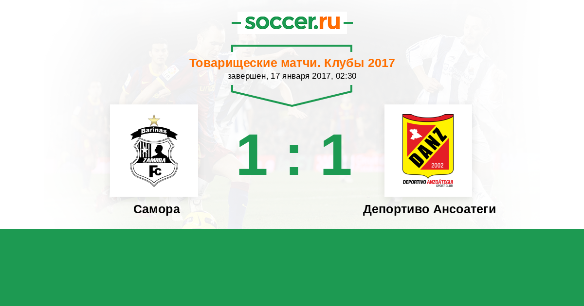 Венесуэла. Примера дивизион 20.08.2017 Замора Логотип футбольный клуб Замора (Баринас) 2:2 Логотип футбольный клуб Депортиво Ансоатеги (Пуэрто Ла Круз) Депортиво Ансоатеги