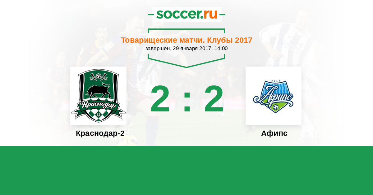 Россия. Вторая лига. Группа 1 28.10.2017 Афипс Логотип футбольный клуб Афипс (Афипский) 2:1 Логотип футбольный клуб Краснодар-2 Краснодар-2