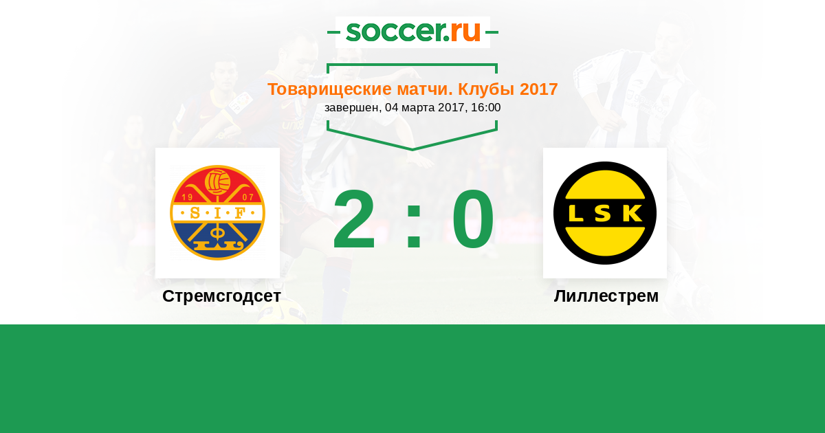 Норвегия. Высшая лига 01.07.2017 Лиллестрем Логотип футбольный клуб Лиллестрем 2:0 Логотип футбольный клуб Стремсгодсет (Драммен) Стремсгодсет