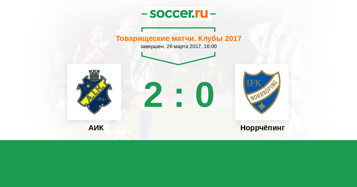 Товарищеские матчи. Клубы 14.02.2016 АИК Логотип футбольный клуб АИК (Стокгольм) 4:1 Логотип футбольный клуб Норрчёпинг Норрчёпинг