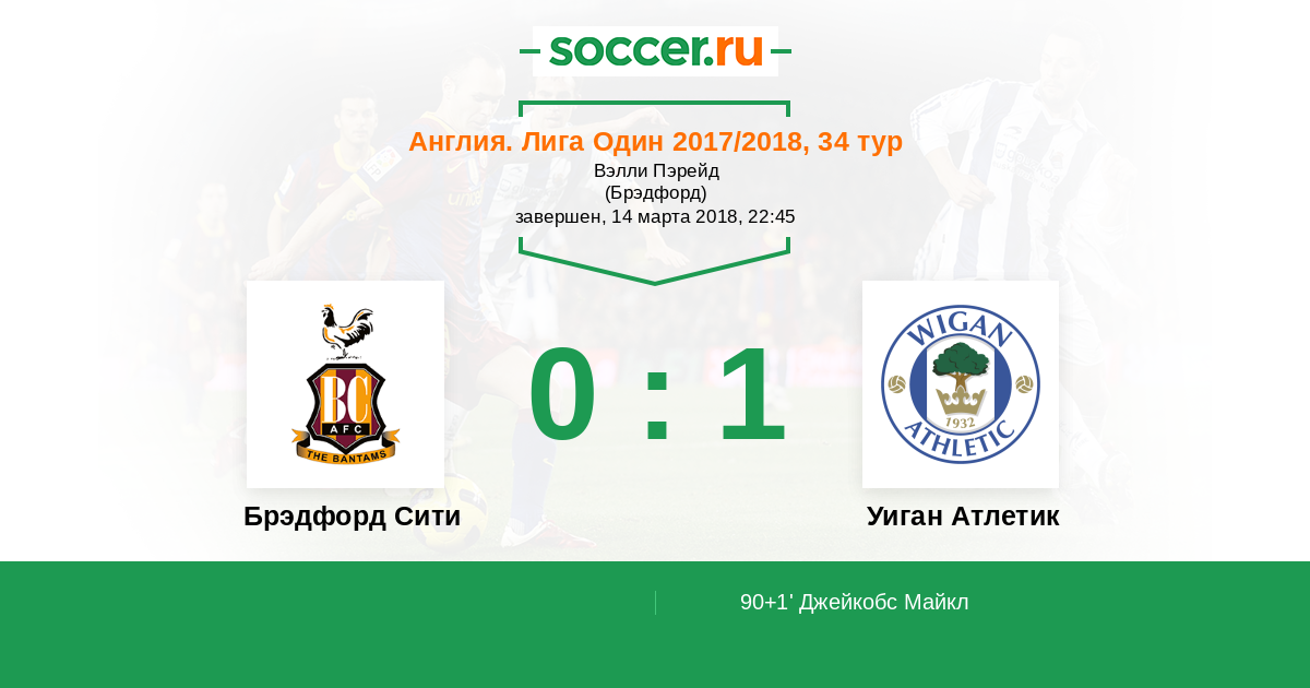 Протокол матча Брэдфорд Сити против Уиган Атлетик