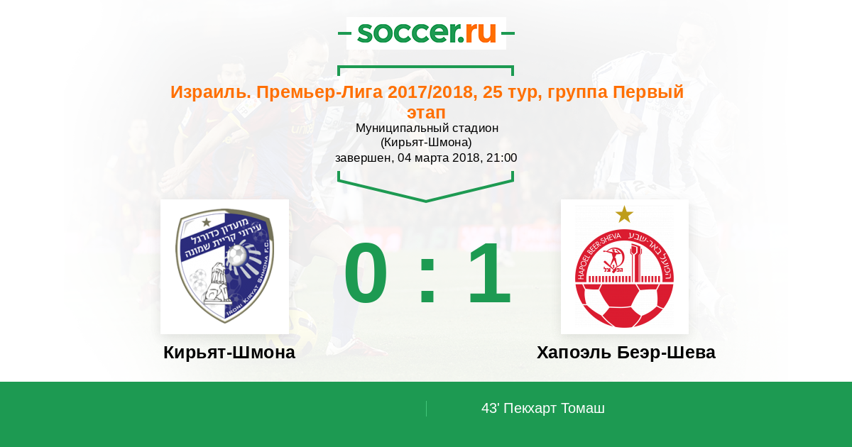 Протокол матча Кирьят-Шмона против Хапоэль Беэр-Шева