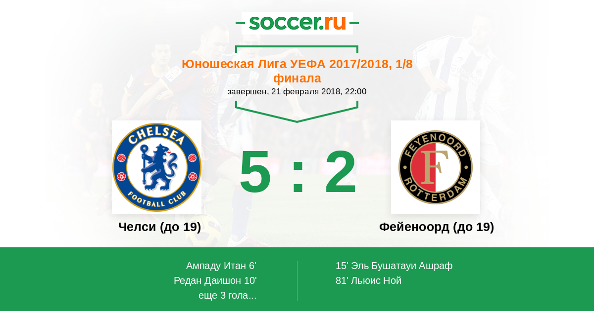 Протокол матча Челси (до 19) против Фейеноорд (до 19)