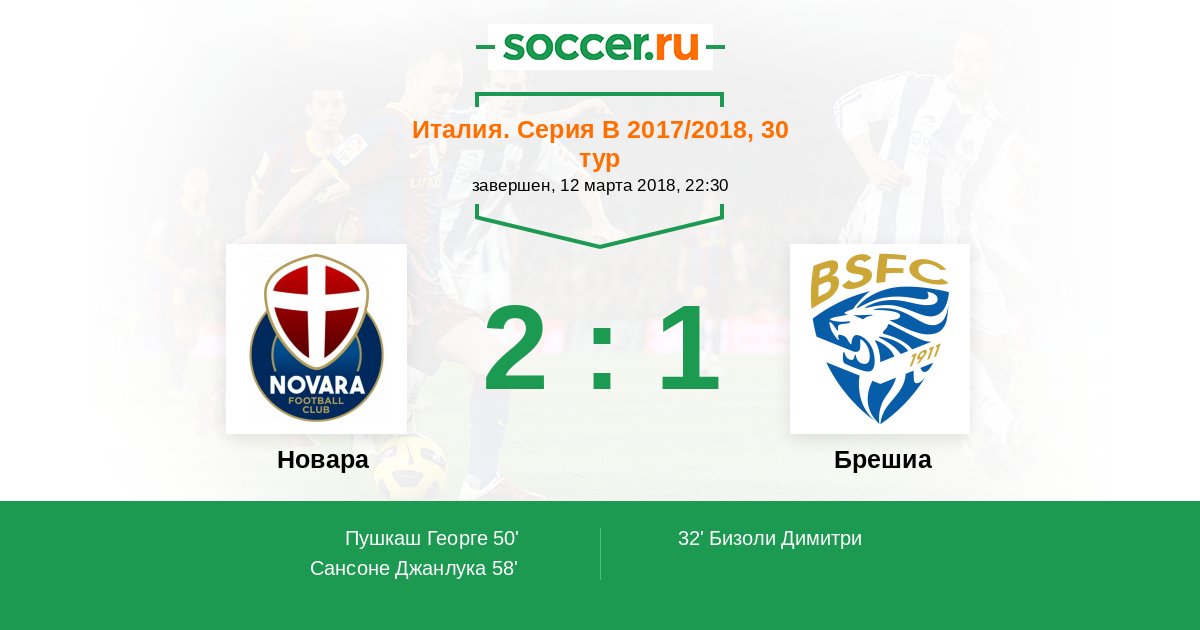 Протокол матча Новара против Брешиа