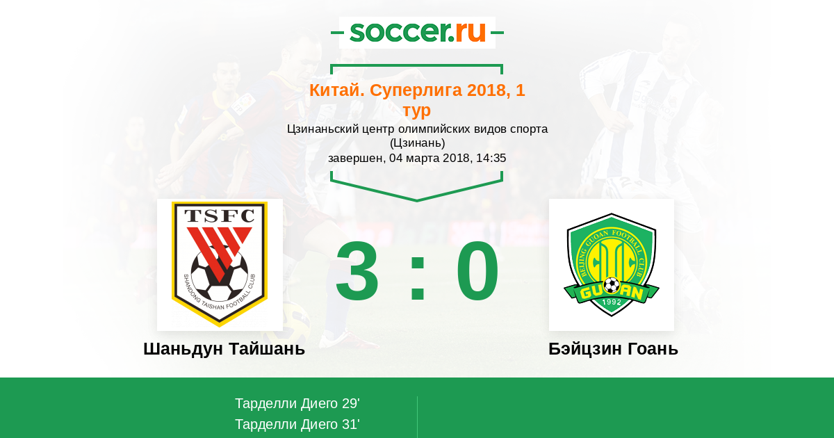 Протокол матча Шаньдун Тайшань против Бэйцзин Гоань