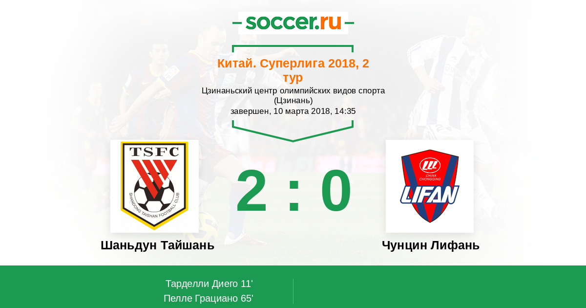 Протокол матча Шаньдун Тайшань против Чунцин Лифань