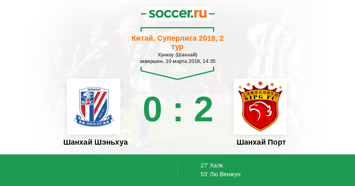 Протокол матча Шанхай Шэньхуа против Шанхай Порт