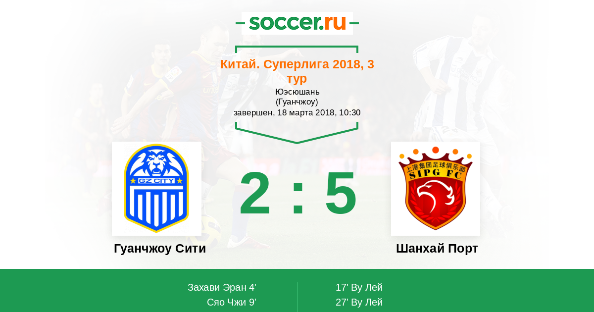 Протокол матча Гуанчжоу Сити против Шанхай Порт