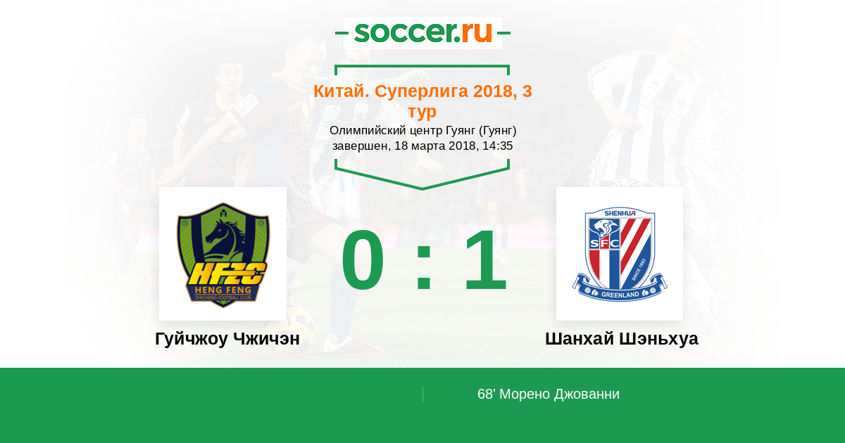 Протокол матча Гуйчжоу Чжичэн против Шанхай Шэньхуа