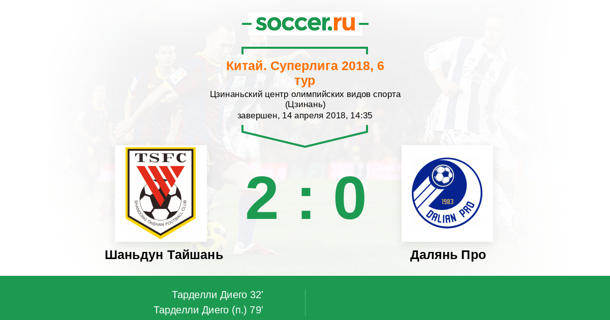 Протокол матча Шаньдун Тайшань против Далянь Про