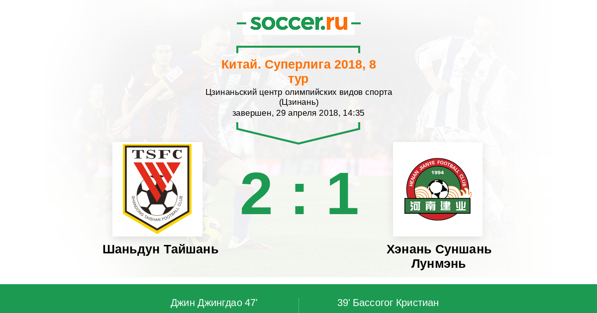 Протокол матча Шаньдун Тайшань против Хэнань Суншань Лунмэнь