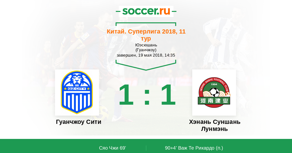 Протокол матча Гуанчжоу Сити против Хэнань Суншань Лунмэнь