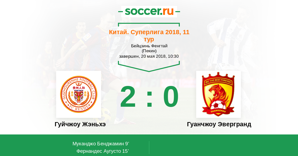 Протокол матча Гуйчжоу Жэньхэ против Гуанчжоу Эвергранд