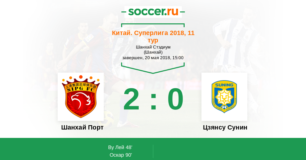 Протокол матча Шанхай Порт против Цзянсу Сунин
