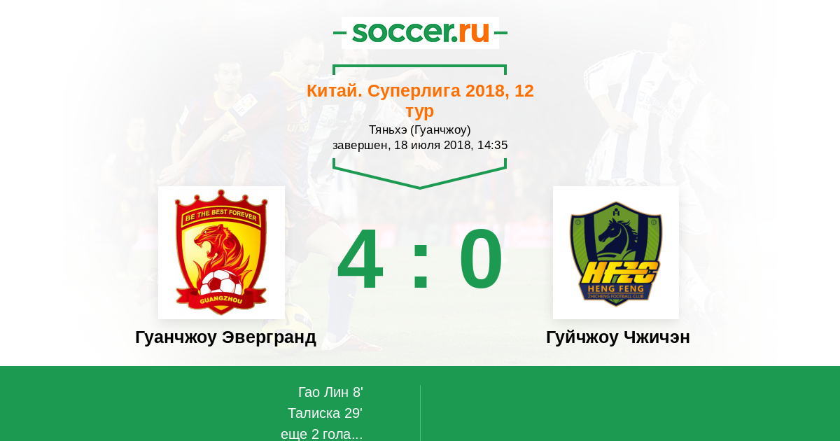 Протокол матча Гуанчжоу Эвергранд против Гуйчжоу Чжичэн