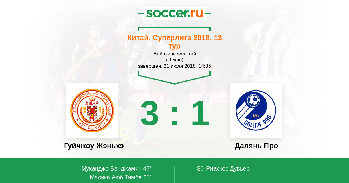 Протокол матча Гуйчжоу Жэньхэ против Далянь Про