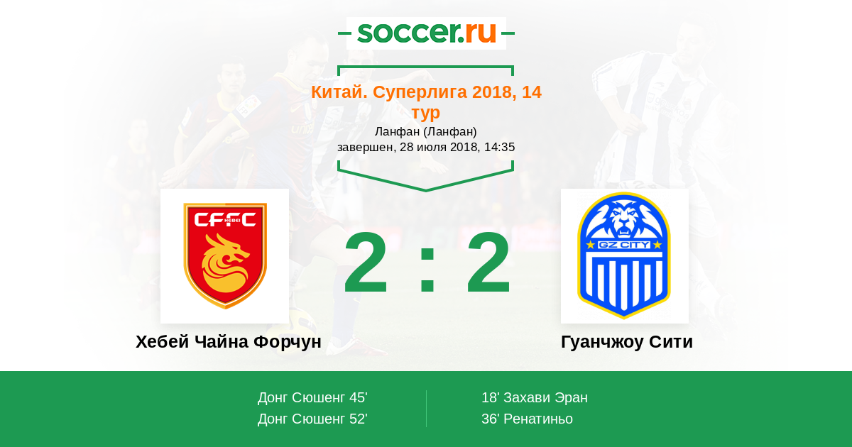 Протокол матча Хебей Чайна Форчун против Гуанчжоу Сити
