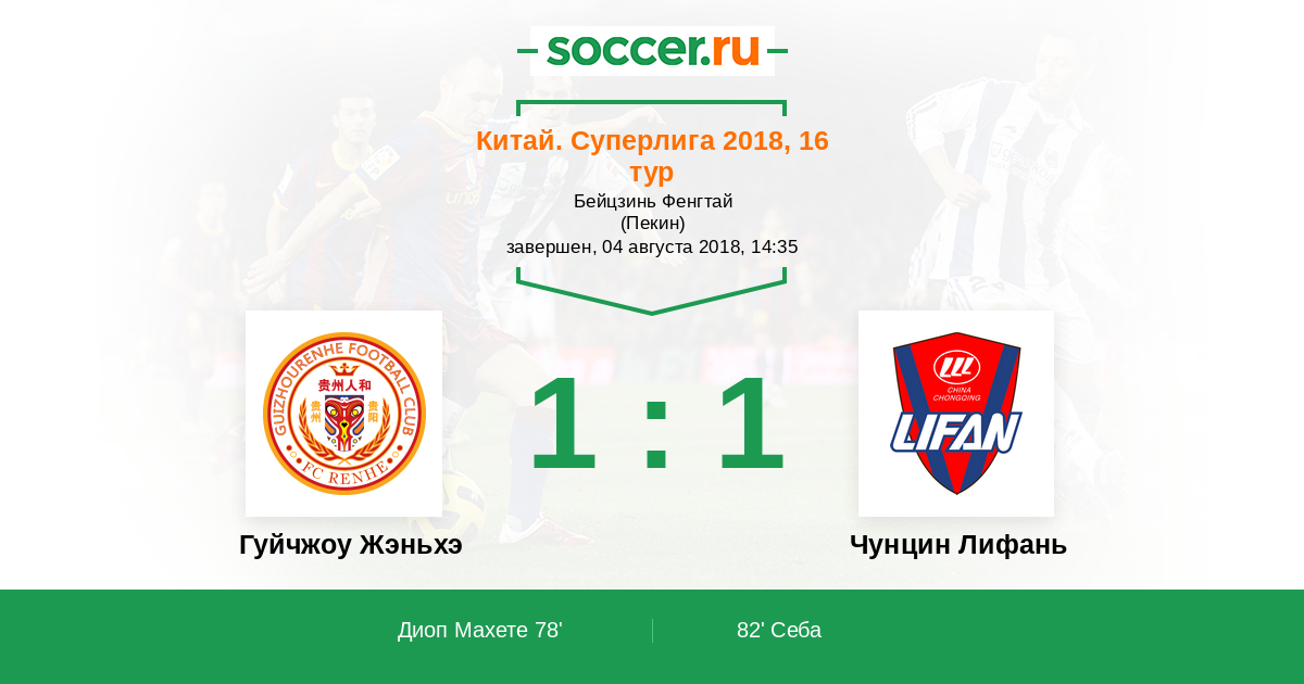 Протокол матча Гуйчжоу Жэньхэ против Чунцин Лифань