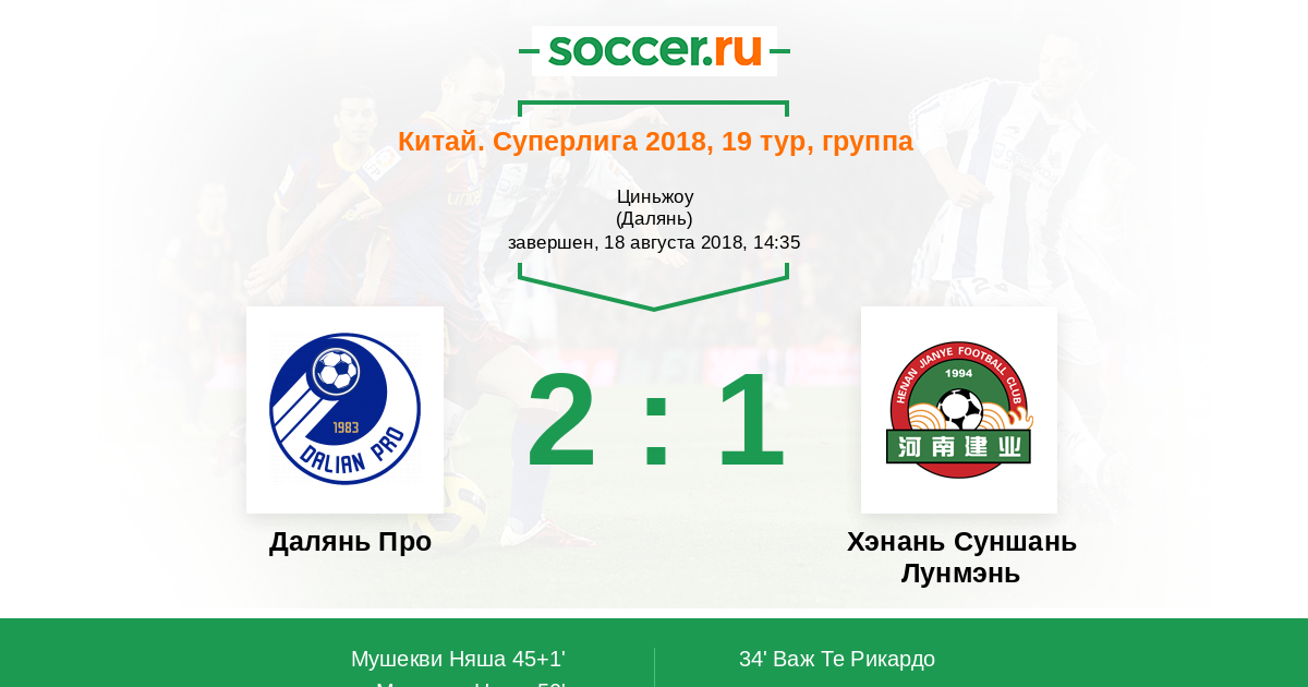Протокол матча Далянь Про против Хэнань Суншань Лунмэнь