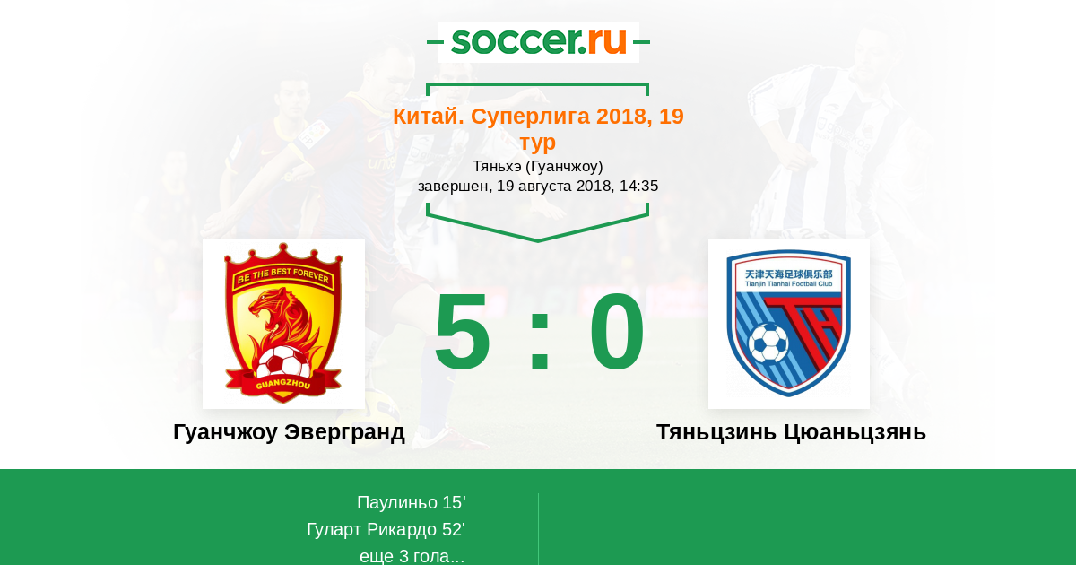 Протокол матча Гуанчжоу Эвергранд против Тяньцзинь Цюаньцзянь