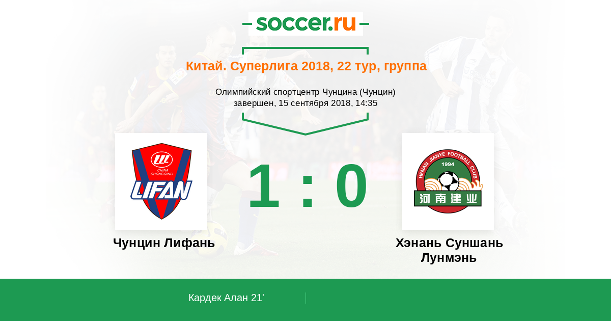 Протокол матча Чунцин Лифань против Хэнань Суншань Лунмэнь
