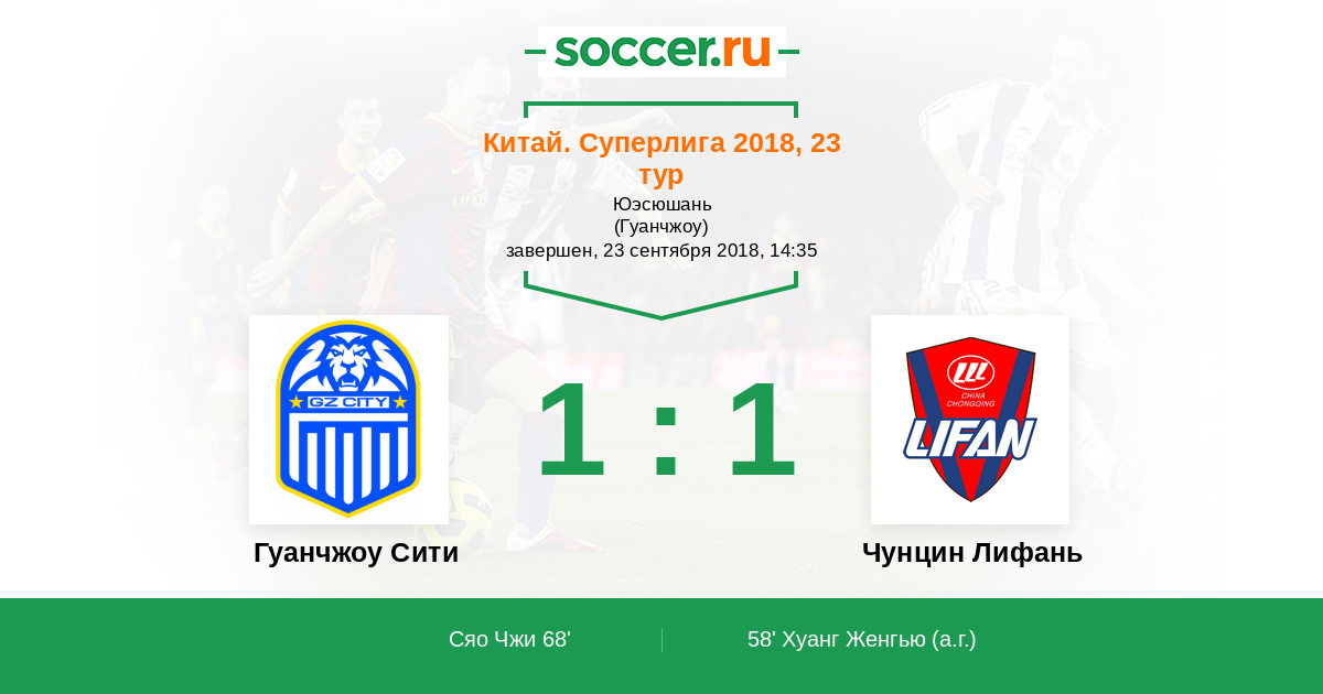 Протокол матча Гуанчжоу Сити против Чунцин Лифань