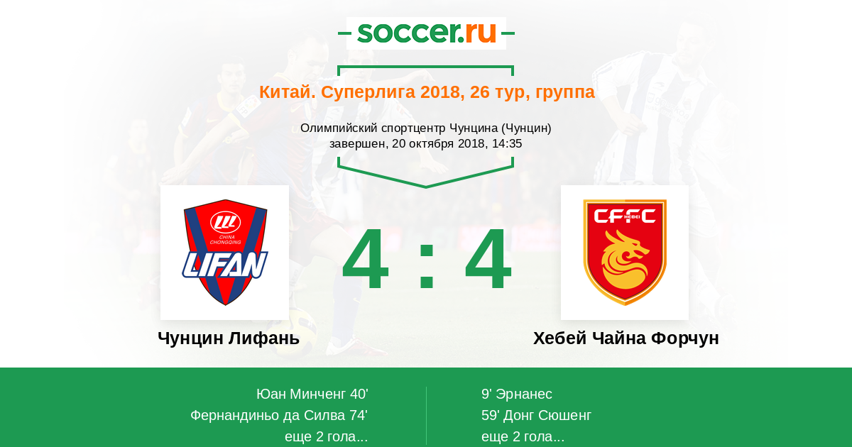 Протокол матча Чунцин Лифань против Хебей Чайна Форчун