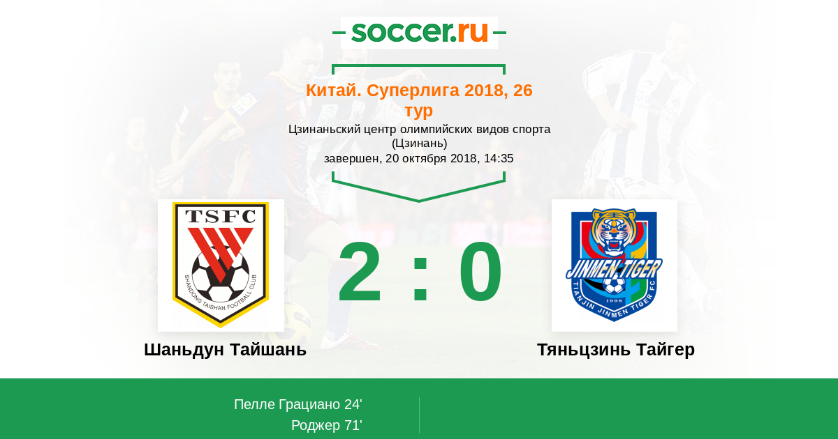 Протокол матча Шаньдун Тайшань против Тяньцзинь Тайгер