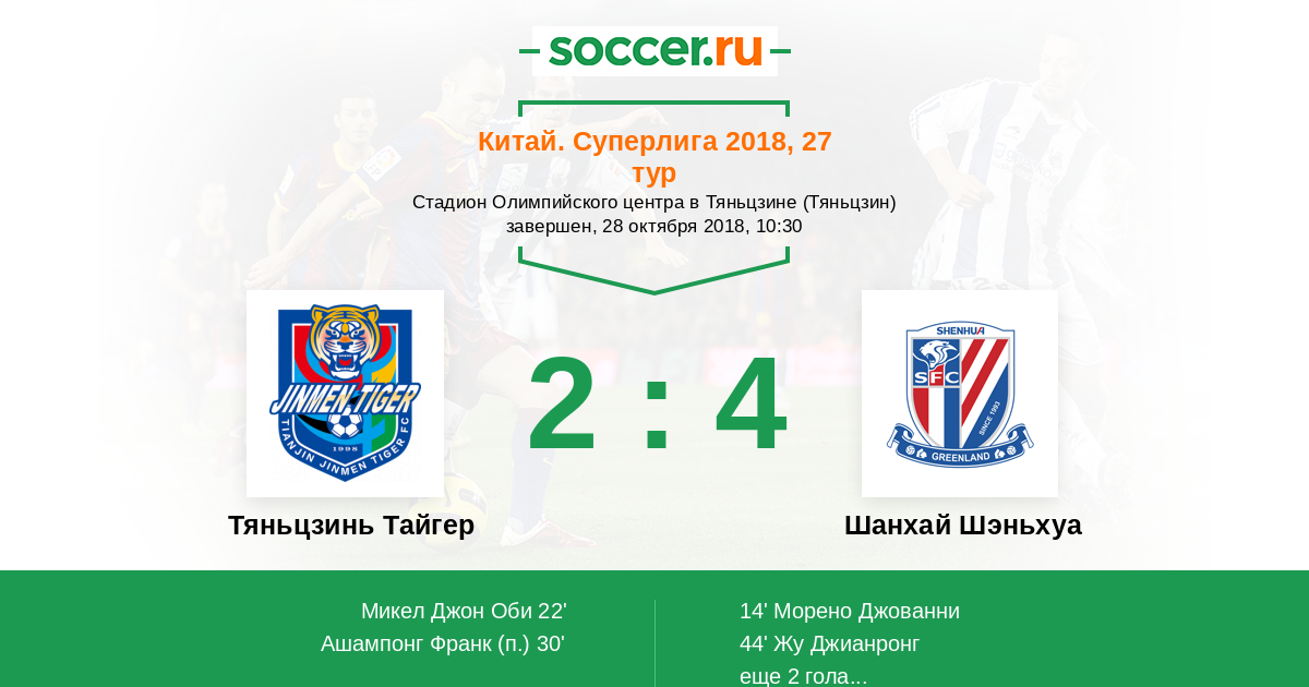 Протокол матча Тяньцзинь Тайгер против Шанхай Шэньхуа