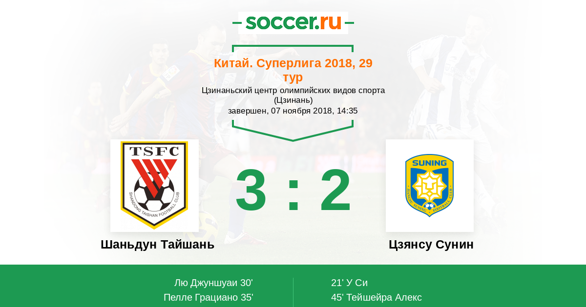 Протокол матча Шаньдун Тайшань против Цзянсу Сунин