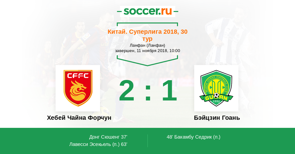 Протокол матча Хебей Чайна Форчун против Бэйцзин Гоань