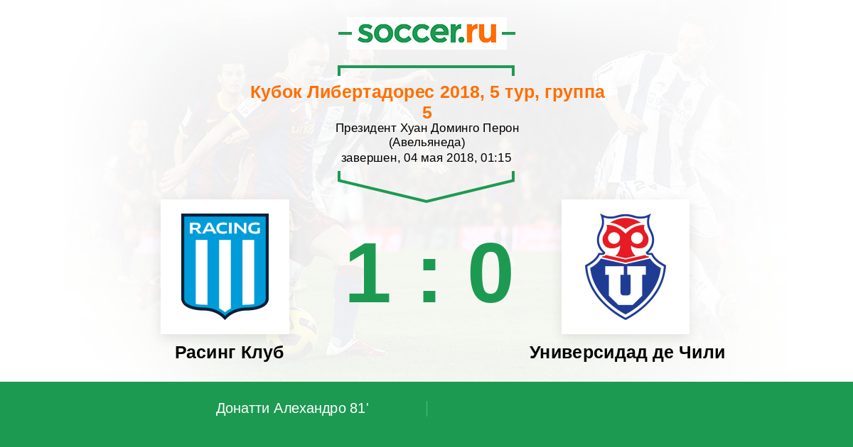 Протокол матча Расинг Клуб против Универсидад де Чили