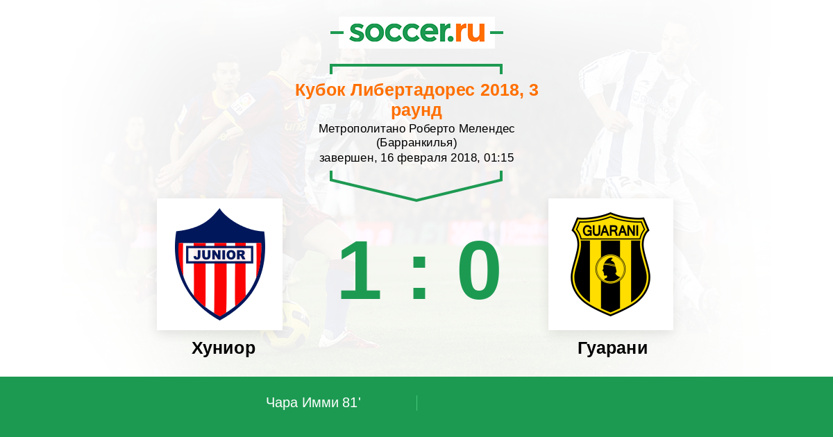Протокол матча Хуниор против Гуарани